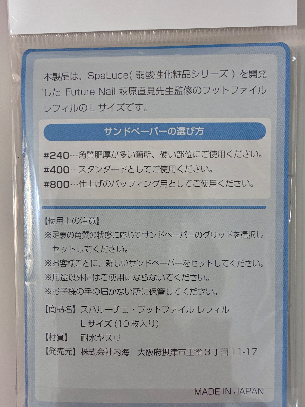 LとSの2サイズ、3種類の目の粗さ・細かさをラインナップした、フットファイル専用レフィル。